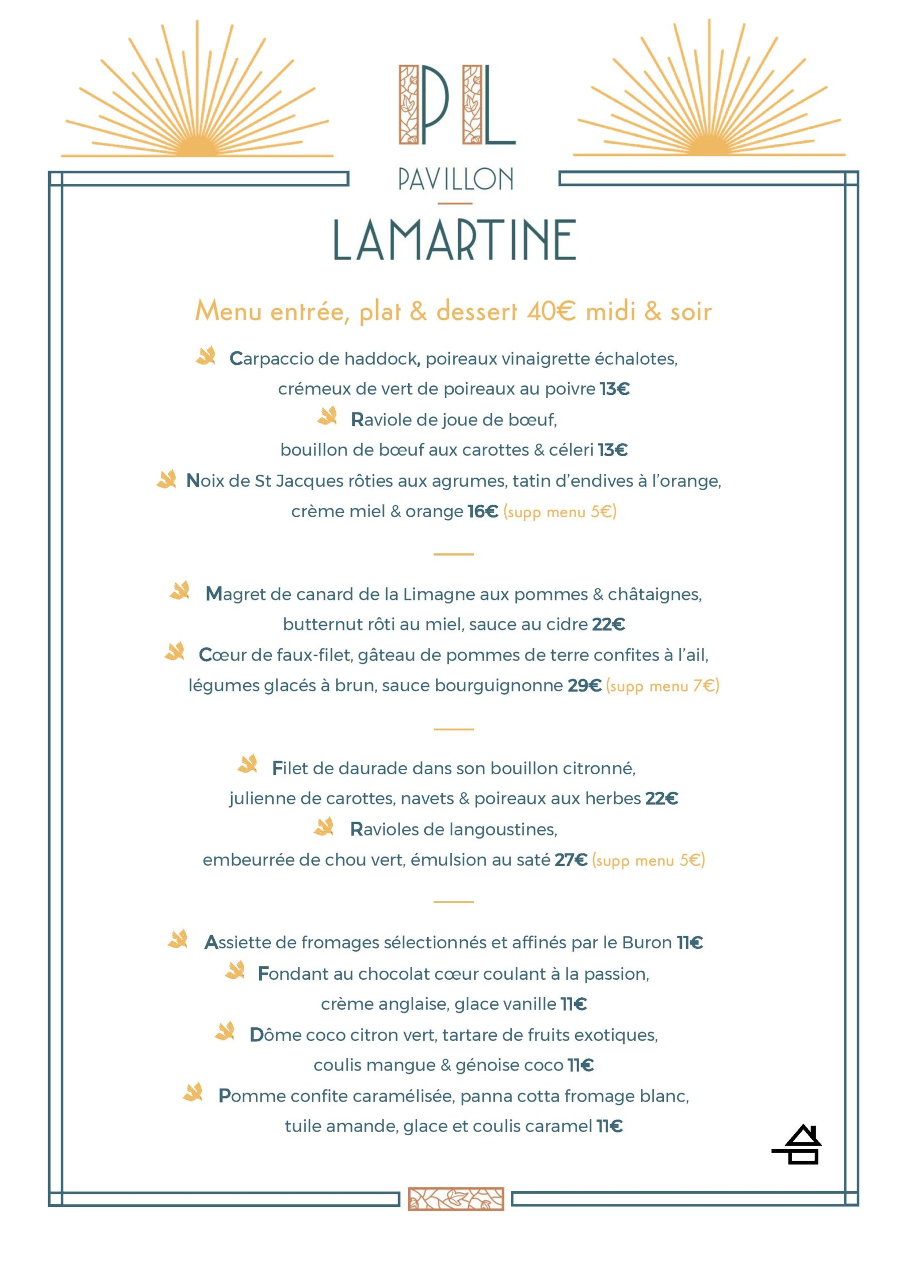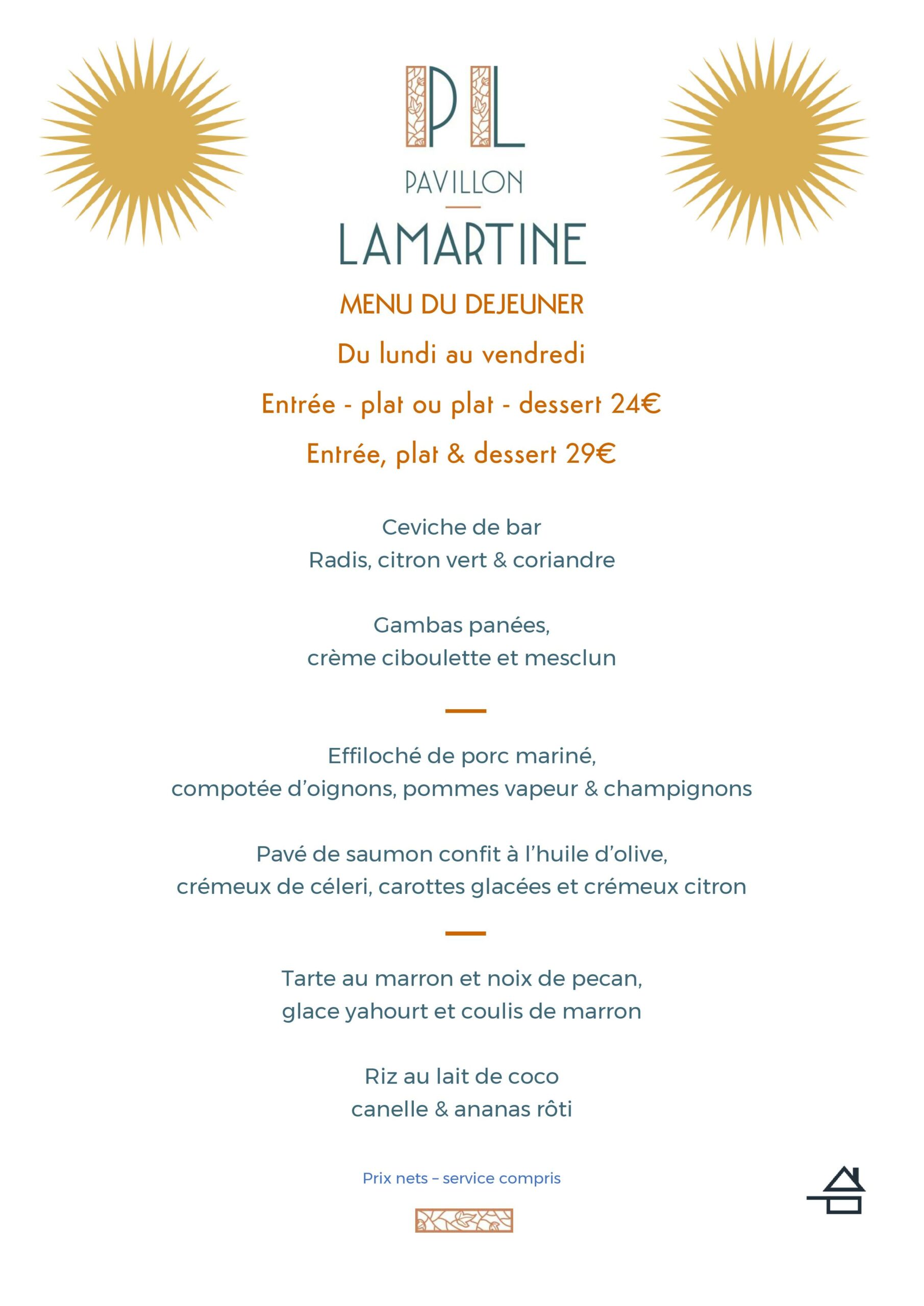 Niché dans la cour privée d’une bâtisse du XIXème siècle, le Pavillon Lamartine vous ouvre ses portes du lundi au samedi midi et du mardi au vendredi soir.
